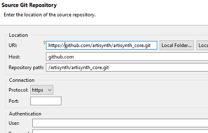 If you are planning to use the Eclipse IDE (Section 13), you can install from GitHub directly into Eclipse. Directions on installing Eclipse and configuring it for ArtiSynth development are given in Section 13.1. Once Eclipse is installed, ArtiSynth can be installed as follows: